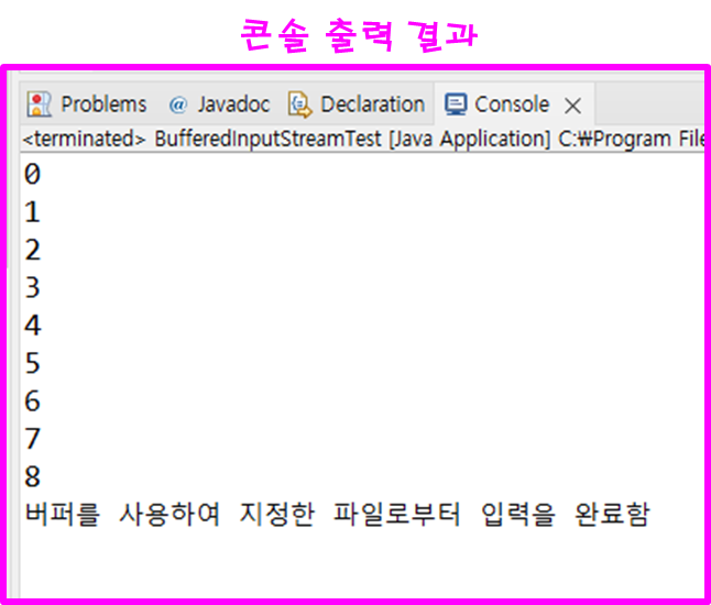 BufferedOutputStream1.txt 파일을 버퍼를 사용하여 읽어 온 결과는 다음과 같습니다.