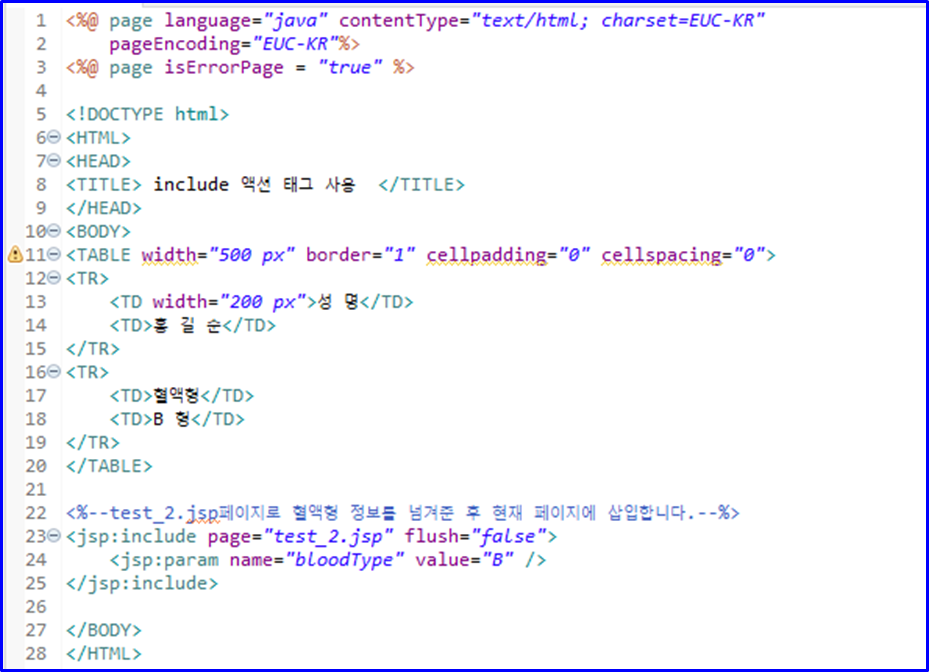 include 액션 태그는 다른 페이지를 현재 페이지에 포함시키고자 할 때 사용합니다.